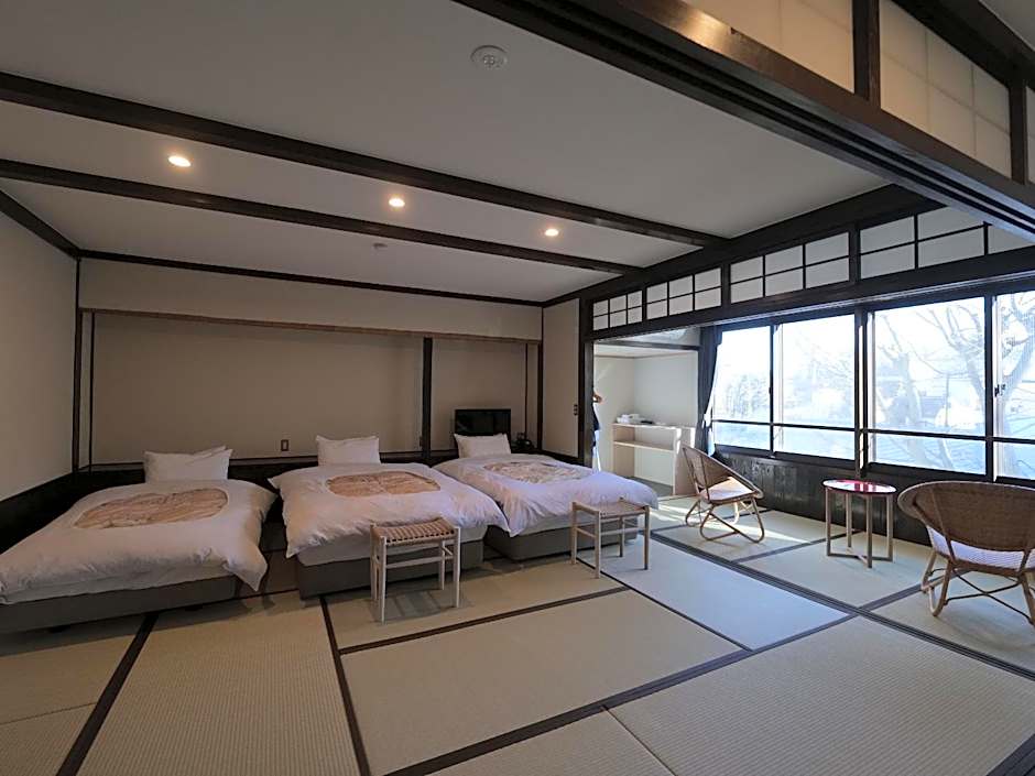 The spacious triple room offers air conditioning, tatami, as well as a private bathroom featuring a bath and a shower. The triple room provides a flat-screen TV, an electric kettle, yukata and heating. The unit offers 3 beds.